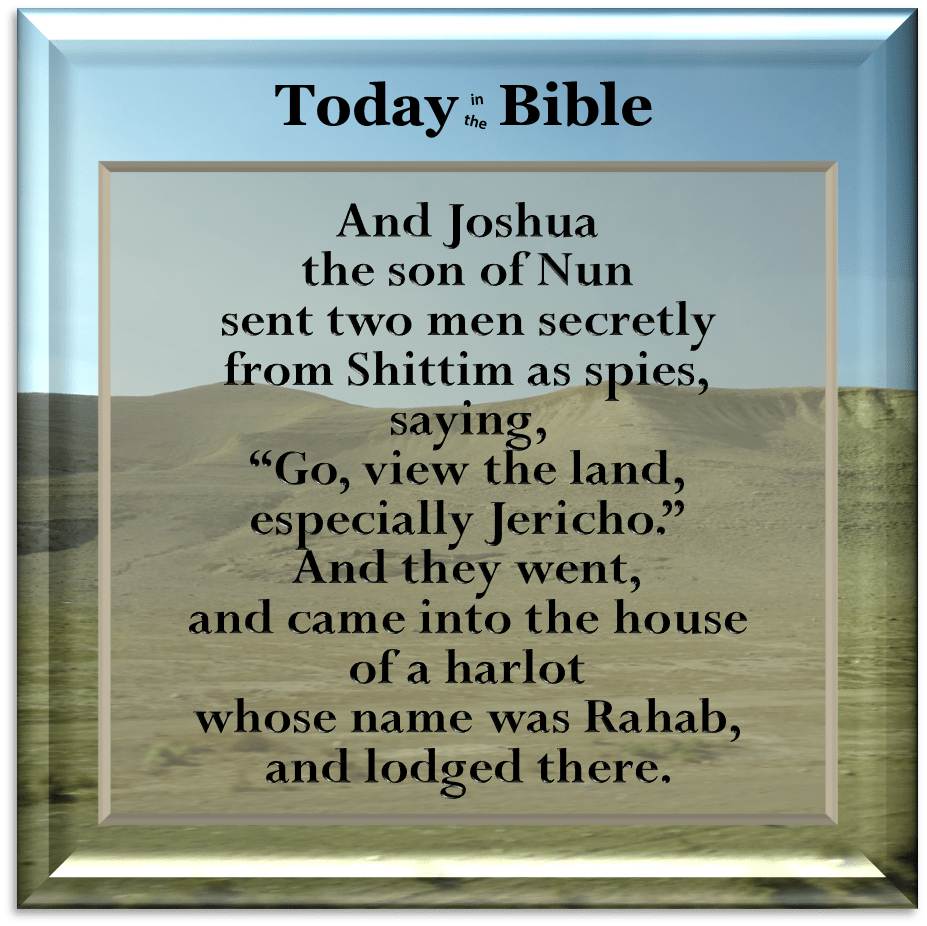 Today in the Bible is the traditional date for when Joshua dispatched the two spies to scope out the Land, especially Jericho. This was done in preparation of the famous crossing of the Jordan River, when the children of Israel finally step foot into the Promised Land. We hope you’ll join us for future posts as we follow, not only Joshua and the children of Israel, but also as we learn more about Rahab and the amazing picture her name paints when read in the ancient pictographs of the Hebrew alphabet.