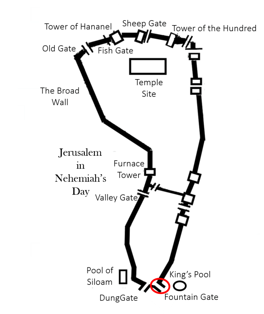 This gate is only mentioned in the book of Nehemiah. When he made his night ride to inspect the walls of Jerusalem, Nehemiah went down to inspect the Fountain Gate. It was so badly damaged that he couldn’t get through.