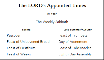 Let’s bring in a high-level listing of the LORD’s Appointed Times as listed in Leviticus 23.
