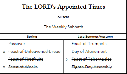 That makes three of the Appointed Times on our list pilgrimage festivals. Times when all men of Israel were to appear before the LORD. Let’s mark them with an “x.”