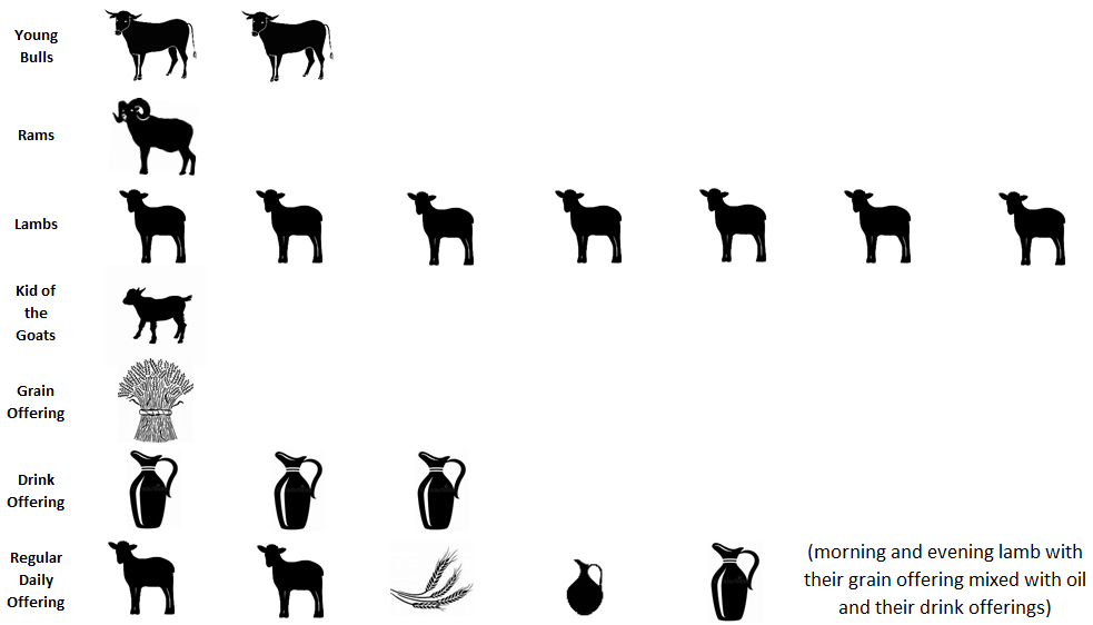 At the beginnings of your months you shall present a burnt offering to the LORD: two young bulls, one ram, and seven lambs in their first year, without blemish; three-tenths of an ephah of fine flour as a grain offering, mixed with oil, for each bull; two-tenths of an ephah of fine flour as a grain offering, mixed with oil, for the one ram; and one-tenth of an ephah of fine flour, mixed with oil, as a grain offering for each lamb, as a burnt offering of sweet aroma, an offering made by fire to the LORD.
