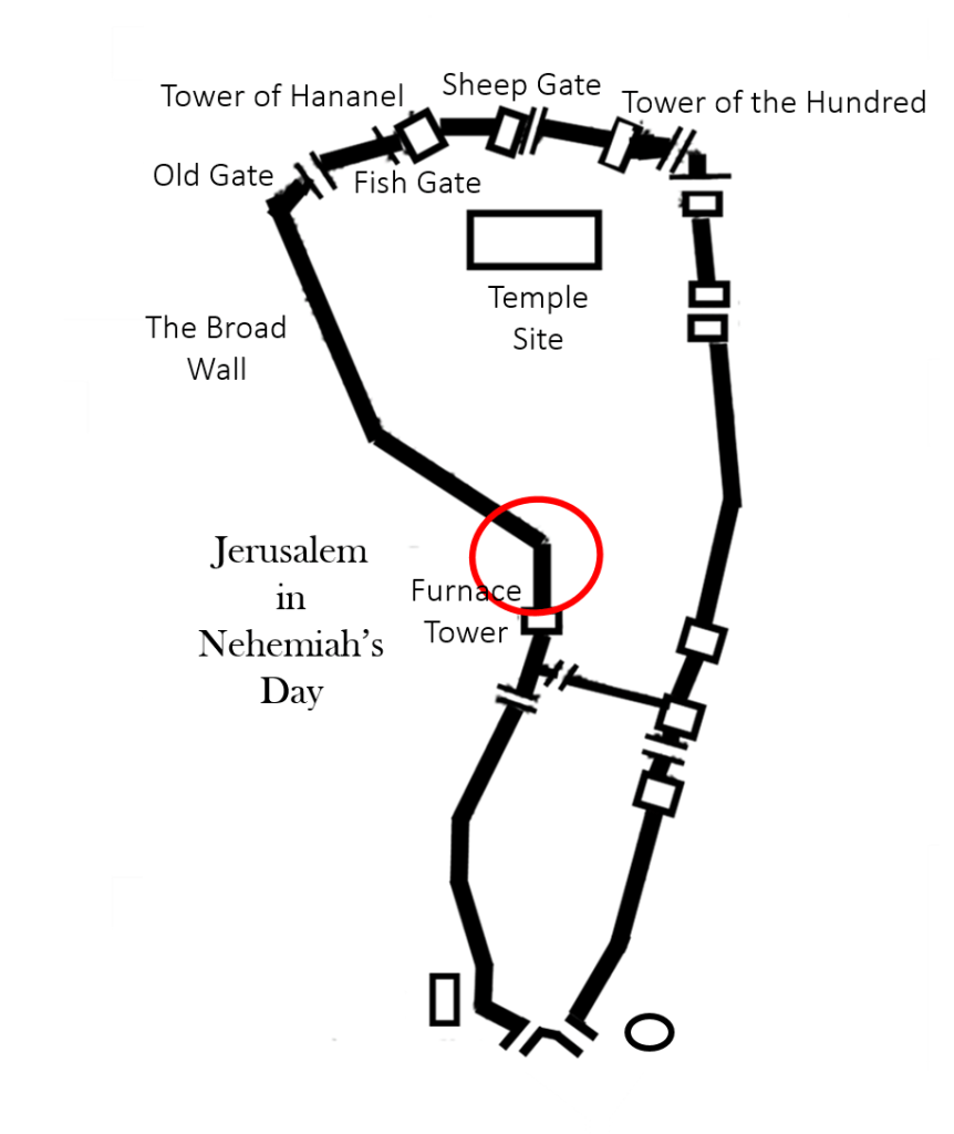 This tower is believed to be related to the Bakers’ Street referenced in Jeremiah 37:21. A “tannur” is a small beehive-shaped oven used mainly for baking bread. This is the same word as the mysterious “smoking oven” that was present with the “flaming torch” that moved between the animal parts of the covenant while Abraham slept (Genesis 15:17). The “Migdal Tannurim” is mentioned once again in Nehemiah 12.