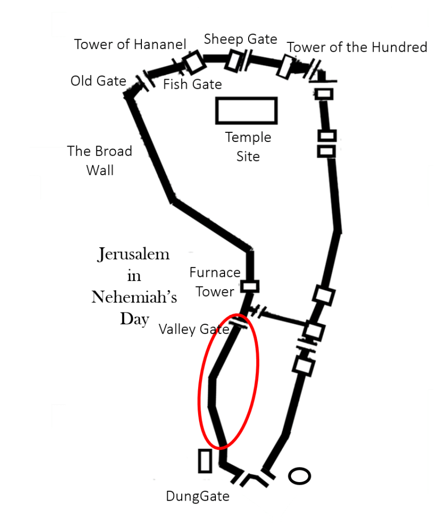This is the second time that we have run into the Valley Gate in the story of Nehemiah. The first time we studied out this word was in our article on Nehemiah’s secret nighttime ride to inspect the walls and gates of the city. Hebrew utilizes several different words for “valley,” depending upon what the physical attributes of the valley are. “Gai” indicates that the valley is an elongated, flat-bottomed depression.