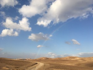 As many of you may know, the Torah is broken up into weekly readings called a parashah. One parashah is studied each week and by the end of the year, the entire Torah has been studied…and then you begin again. When my mother and I were in Israel, the first week we were there was parashah Noach (Noah). On our first full day in Israel, we went out into the wilderness and visited a Bedouin community for lunch and a camel ride. While we were there, there was a rainbow…really, a rainbow…during parashah Noach!