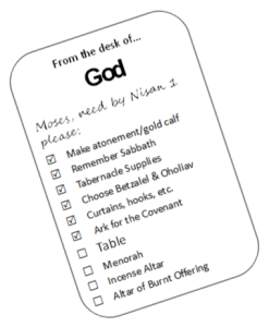 There has been a lot crossed off of the “To Do” list! Let’s return to the text to see what Betzalel works on next.
