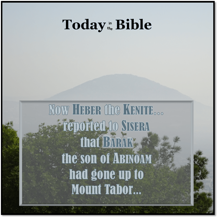 Now Heber the Kenite, of the children of Hobab the father-in-law of Moses, had separated himself from the Kenites and pitched his tent near the terebinth tree at Zaanaim, which is beside Kedesh. And they reported to Sisera that Barak the son of Abinoam had gone up to Mount Tabor.